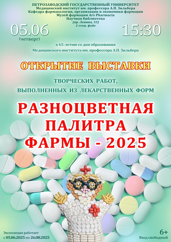 На выставке представлены работы участников V Всероссийского творческого конкурса на лучшее произведение искусства, выполненное из лекарственных форм "Разноцветная палитра фармы".