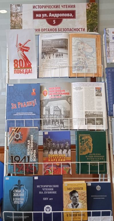 К открытию IX научной конференции в Петрозаводском государственном университете "Исторические чтения на ул. Андропова, 5. История органов безопасности", посвящённой 80-й годовщине Победы советского народа в Великой отечественной войне 1941−1945 годов, Научная библиотека ПетрГУ подготовила книжную выставку, на которой представлены материалы по истории организации и деятельности отечественных спецслужб и правоохранительных органов, литература о борьбе органов безопасности Карелии против финских спецслужб в советско-финляндской войне 1939–1940 гг., деятельности в годы Великой Отечественной войны на Карельском фронте, а также труды участников конференции.