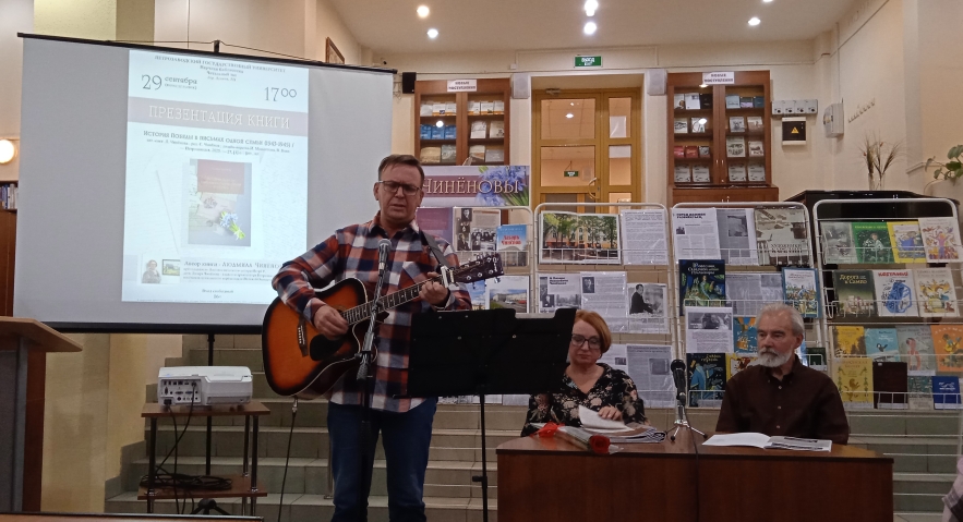 В книге содержатся письма времён Великой Отечественной войны. Во время презентации друг Научной библиотеки Игорь Буров исполнил патриотические песни "Командир" на стихотворение Виктора Ергина и свою песню "Земля".