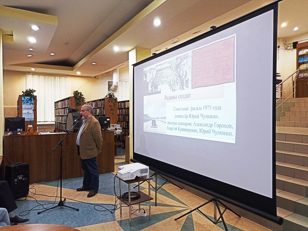 В октябре в киноклубе состоялась демонстрация фильма "Родины солдат" режиссёра Юрия Чулюкина, снятого в 1975 году. События фильма повествуют о последних годах жизни известного учёного-фортификатора, генерал-лейтенанта инженерных войск, доктора военных наук Дмитрия Михайловича Карбышева. 8 августа 1941 года он был тяжело контужен в бою у реки Днепр и в бессознательном состоянии попал в плен к нацистам. Офицеры вермахта пытались добиться от Карбышева сотрудничества, однако генерал не предавал родную страну, воодушевлял пленных, которые разделяли страшную участь, и сохранил преданность Отчизне до своей смерти 18 февраля 1945 года в концлагере Маутхаузен.