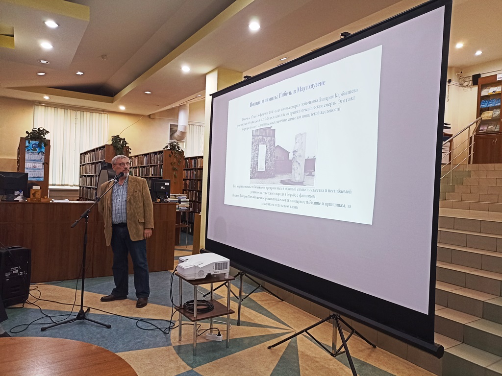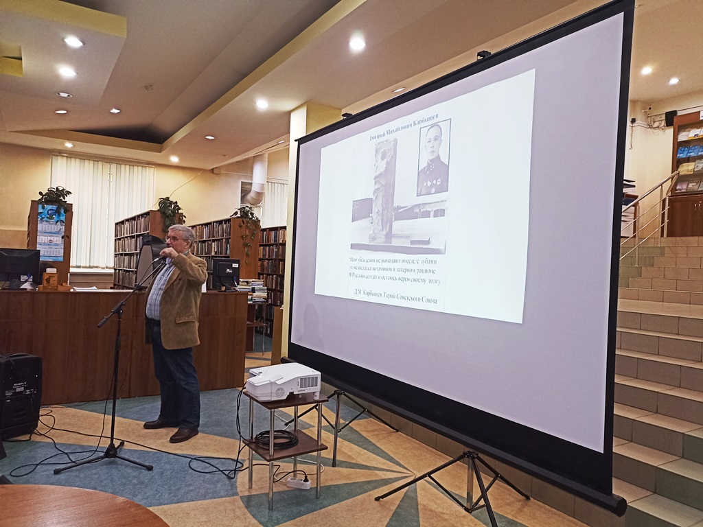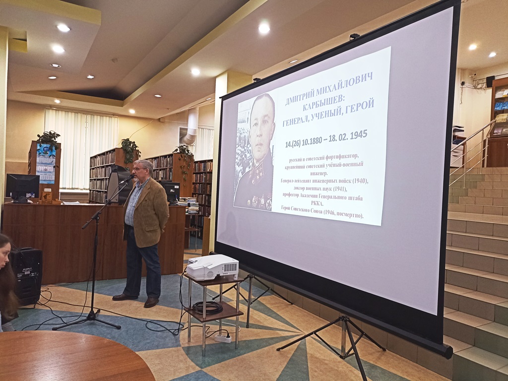 А. Ю. Ильин рассказал о Владимире Седове – заслуженном артисте РСФСР, актёре, сыгравшем главную роль генерала Карбышева, о работе режиссёра Юрия Чулюкина над фильмом в течение восьми лет вместе с советским кинодраматургом, писателем Александром Гороховым и советским киносценаристом Георгием Кушниренко. Александр Юрьевич отметил основные вехи жизни генерал-лейтенанта Дмитрия Михайловича Карбышева: становление военным инженером, участие в Русско-японской войне 1904-1905 гг., участие в Первой мировой войне, преподавание в Военной академии РККА имени М. В. Фрунзе и в Военно-воздушной академии РККА, путь по концлагерям. Особое внимание А. Ю. Ильин уделил подвигу советского татарского поэта и журналиста, военного корреспондента Мусы Джалиля, который помогал устраивать побеги военнопленных в созданном немцами легионе "Идель-Урал", прозвучало стихотворение "Другу", написанное поэтом во время плена в октябре 1943 года.