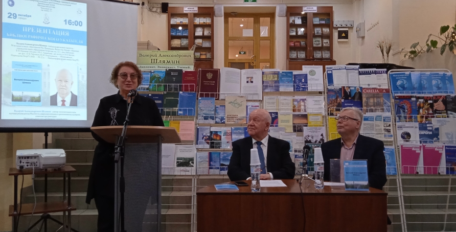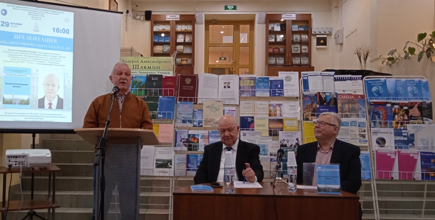 В Научной библиотеке ПетрГУ прошла презентация библиографического указателя трудов научного руководителя Института североевропейских и арктических исследований ПетрГУ, советника при ректорате ПетрГУ, доктора экономических наук Валерия Александровича Шлямина.