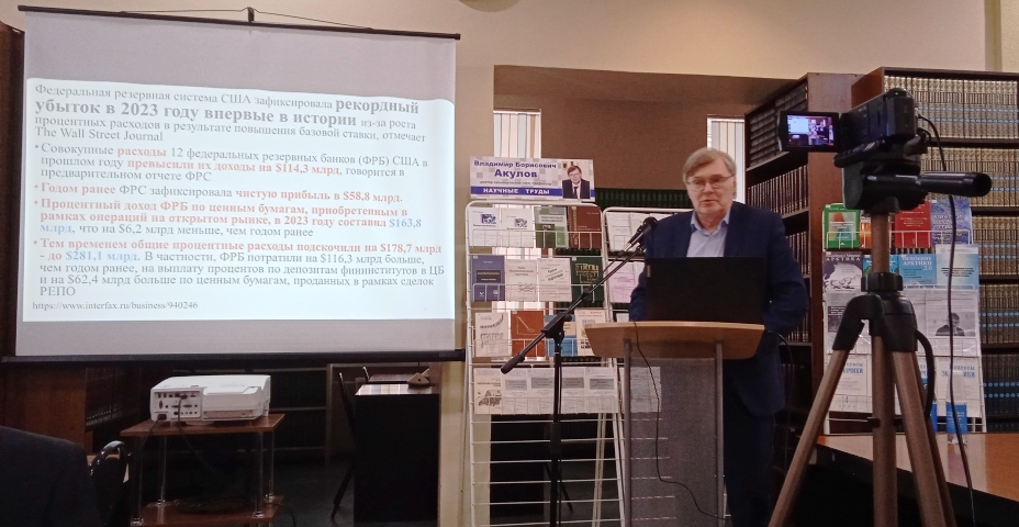 В. Б. Акулов во время открытой лекции разъяснил причины, по которым экономика России не рухнула после введения санкций западными странами. Это, прежде всего, своевременная реакция российских властей и последствия, которые затронули не только Россию, но и всю мировую экономику.