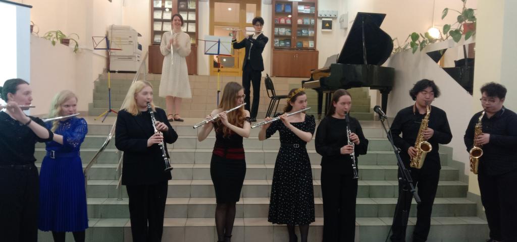Виртуозно была сыграна Чаконадля флейты соло Зигфрида Карга-Элерта в исполнении Дарьи Соколовой. Дуэт саксофонов (Бянь Сыюй и Ли Чэнцзэ) подарил слушателям трогательную историю любви из диснеевского мультфильма "Красавица и чудовище". Еще один дуэт – флейты и кларнета (Наталья Глазова и Екатерина Астафиева) исполнили веселый номер "Кики и Куку на прогулке".