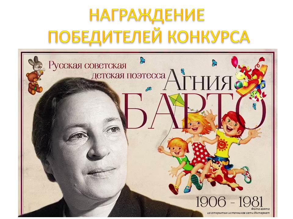 8 апреля в 13.30 в читальном зале Научной библиотеки Петрозаводского государственного университета (ул. Пушкинская, 17) состоится торжественная церемония награждения победителей конкурса "Людям нужен светлый мир…" студентов, магистрантов, ординаторов, аспирантов ФГБОУ ВО «Петрозаводский государственный университет» и обучающихся 8-11 классов школ Петрозаводска – чтецов стихотворений русского поэта Агнии Барто.