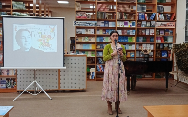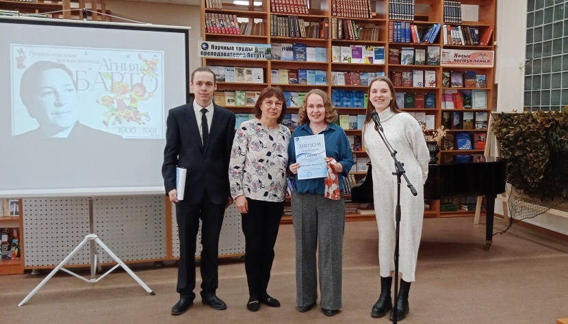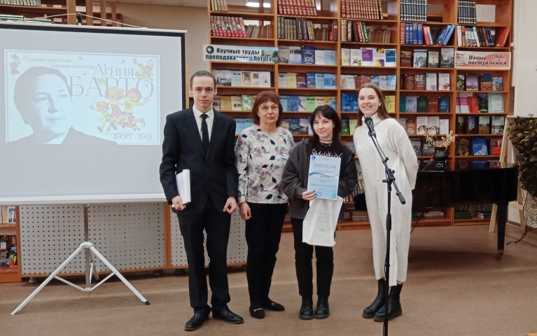 В читальном зале Научной библиотеки (ул. Пушкинская, 17) состоялась торжественная церемония награждения победителей конкурса "Людям нужен светлый мир…" студентов, магистрантов, ординаторов, аспирантов ПетрГУ и обучающихся 8-11 классов школ Петрозаводска – чтецов стихотворений русского поэта Агнии Барто.