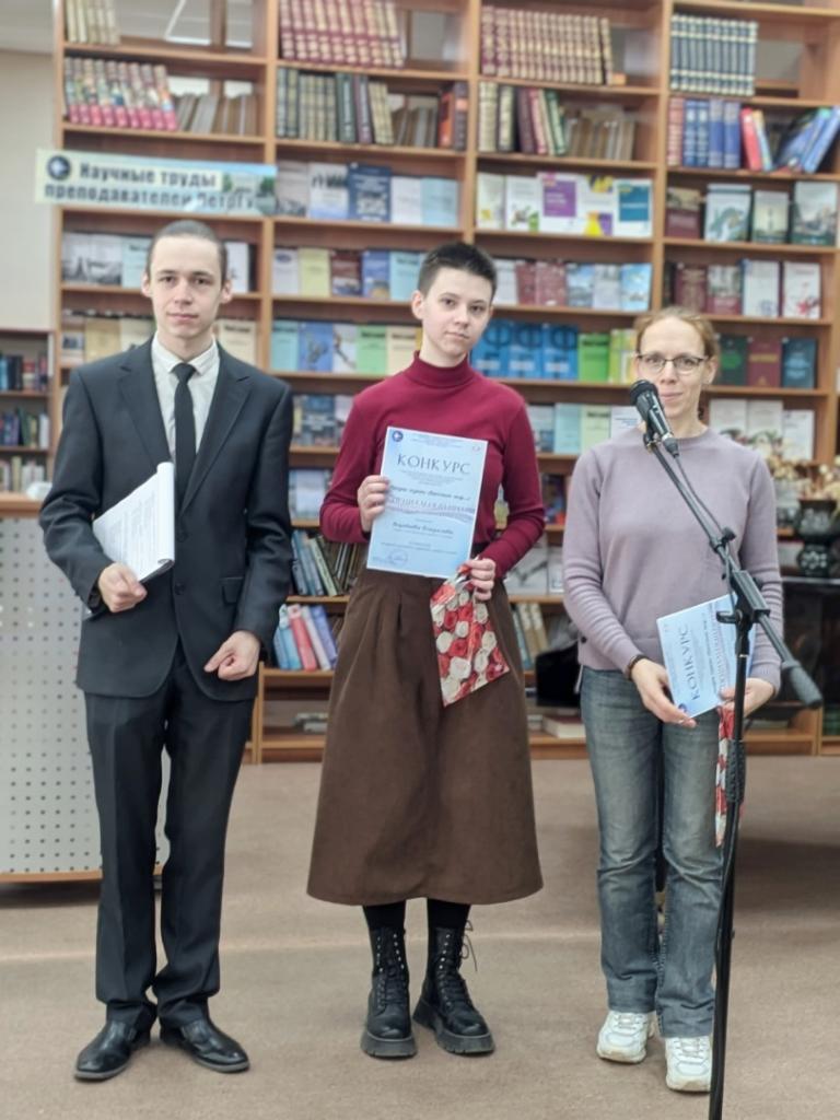 Директор Научной библиотеки М. П. Отливанчик утвердила специальные призы Научной библиотеки участникам конкурса. Призы вручила заместитель директора Научной библиотеки по развитию Е. В. Свидерская.