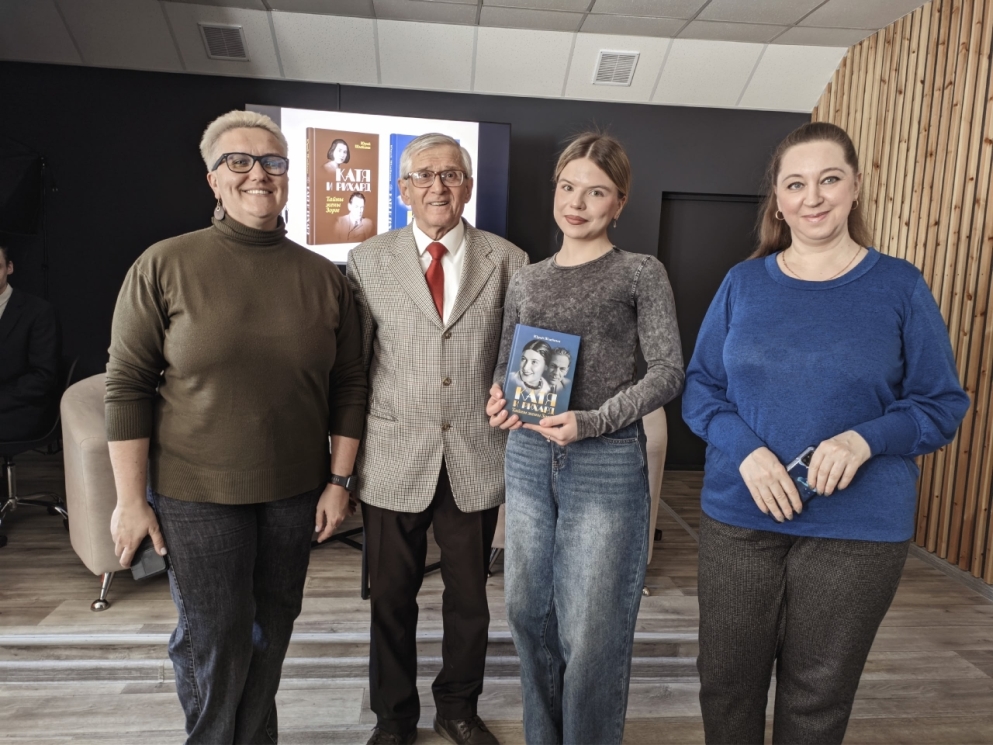 В конце встречи Юрий Викторович Шлейкин подарил отделу экономической и юридической литературы Научной библиотеки ПетрГУ книгу Шлейкин Ю. В. Катя и Рихард. Тайны жены Зорге : история неоконченного поиска / Юрий Шлейкин. – 2-е изд., доп. – Петрозаводск : Острова, 2025. – 288 с.